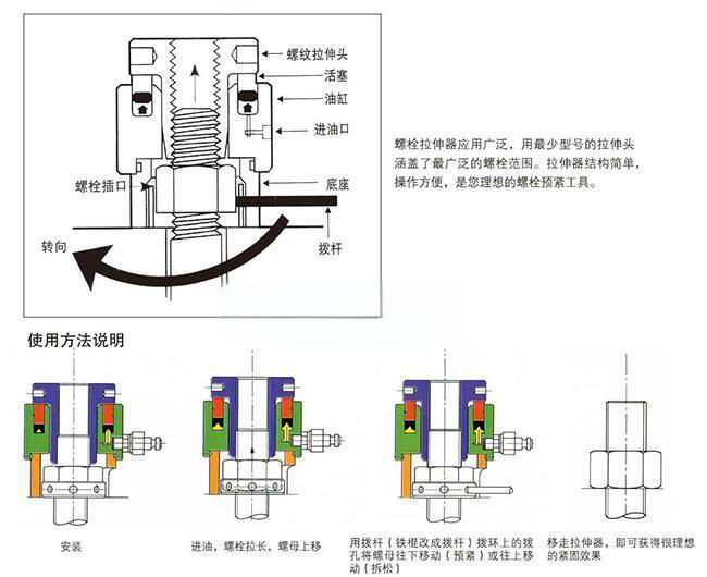 液壓螺栓連接作為一種高效、可靠的機械連接方式,在工業(yè)領(lǐng)域中得到了廣泛應(yīng)用。對于大尺寸螺栓的緊固和拆卸,液壓螺栓拉伸器成為了操作人員的得力助手。今天,我們就來詳細(xì)了解一下液壓螺栓拉伸器的工作原理和一些使用注意事項。