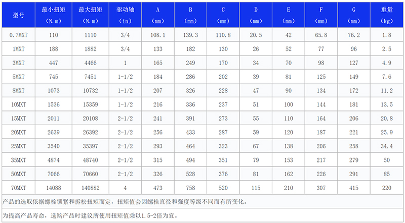 在驅(qū)動(dòng)液壓扳手型號(hào)中,5MXT是除了3MXT之外最常用的液壓驅(qū)動(dòng)板手型號(hào)之一。那么,5MXT型號(hào)液壓扭力扳手的扭矩范圍是多少?適用的螺栓規(guī)格大概多大?具體型號(hào)參數(shù)如何呢?