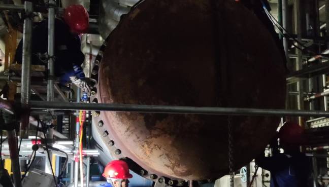 3、將液壓扳手和螺母套筒裝配好,對(duì)液壓扳手和螺栓頭、螺母進(jìn)行涂油處理,防止生銹和削弱摩擦力。