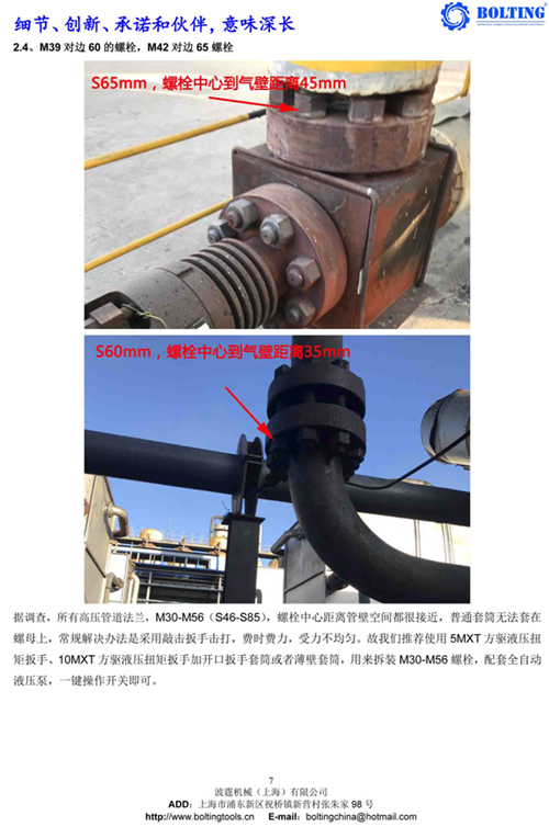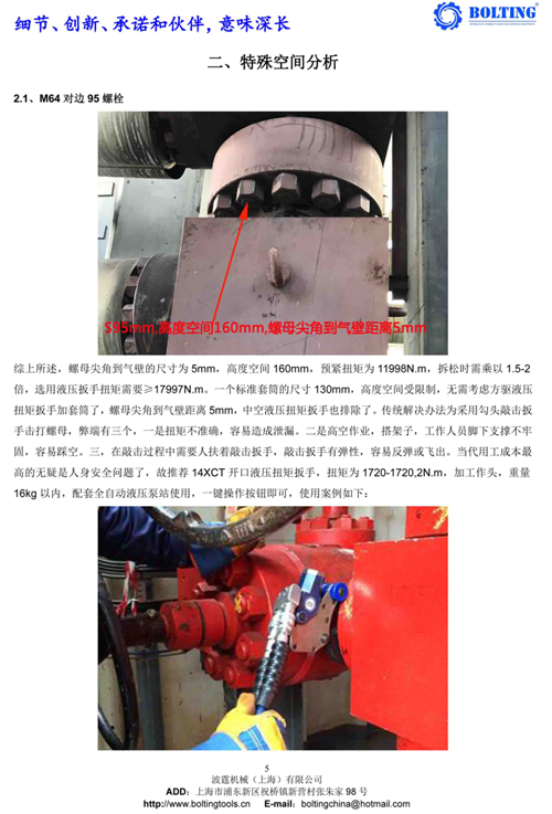 業(yè)主方之前從武漢購(gòu)買(mǎi)過(guò)一套德國(guó)品牌液壓扳手,使用情況并不理想,由于液壓泵和開(kāi)口液壓扳手較為笨重,故不考慮。